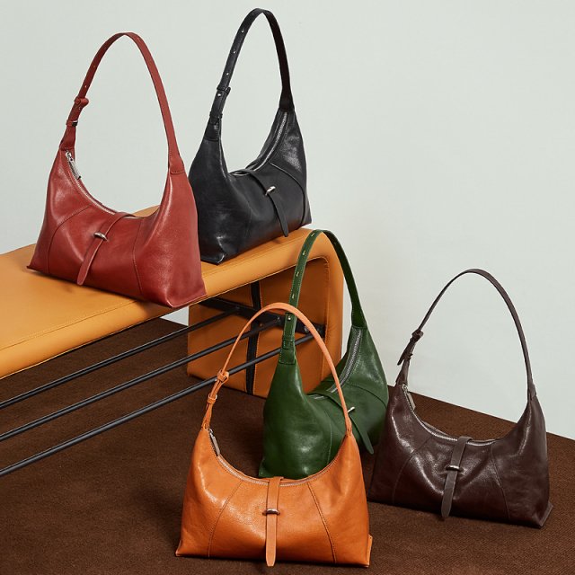 Genuine Leather Crescent Underarm Shoulder Bag for Women – Luxury Crossbody Hobo Tote