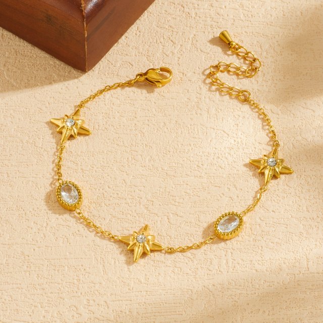 This bracelet is crafted from durable stainless steel that resists tarnishing and fading, making it perfect for daily wear. The smooth link chain sits comfortably on your wrist, secured with a reliable lobster clasp for easy on and off. Sparkling pink details add a feminine glow without feeling over the top, making this piece ideal for both casual outfits and dressed-up occasions.